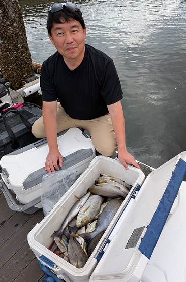 広島廿日市の釣り船 出船時間 10月 5時30分 出船場所変更、ご確認下さい。 桟橋入口と道路には荷物は置かずに公園側でお待ちください→
